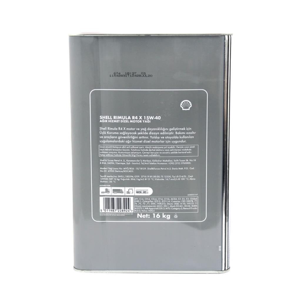 Shell Rimula R4 X 15W40 16 Lt Motor Yağı